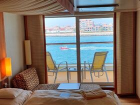 Super Balkonkabine mit dem grossen Balkon auf der Steuerbordseite. Kurze Wege zum hinteren Treppenhaus/Aufzüge. Doppelbett-> Kopfteil steht in Fahrtrichtung. Sessel als drittes Bett umbaubar. Der Balkon ist so groß dass man bequem auf den Stühlen an de Reling sitzen kann und die Hängematte spannen kann. Superkabine, kein Lärm, absolut OK, da auf Deck 6 auch weniger Bewegungen als auf Deck 7 und 8 und deutlich grösserer Balkon mit Glasbrüstung (Mann/Frau Kann vom Bett aufs Meer sehen und nachts die Tür auf und das Rauschen der See hören) . Haben Just gebucht, kann man aber auch getrost Premium buchen.