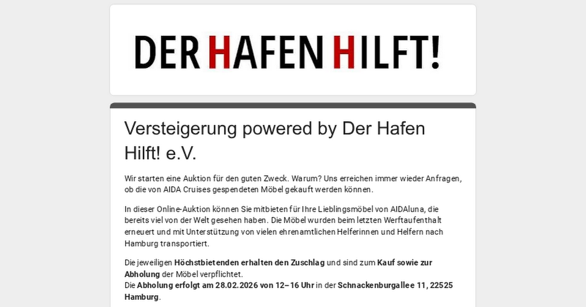 Versteigerung powered by Der Hafen Hilft! e.V.