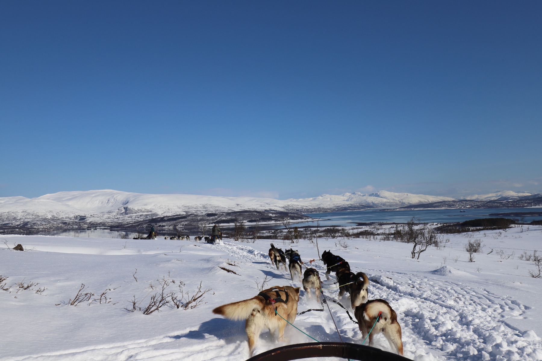 Wir hatten einen Schlitten mit Guide für uns zwei alleine, bei traumhaftem Sonnenschein.