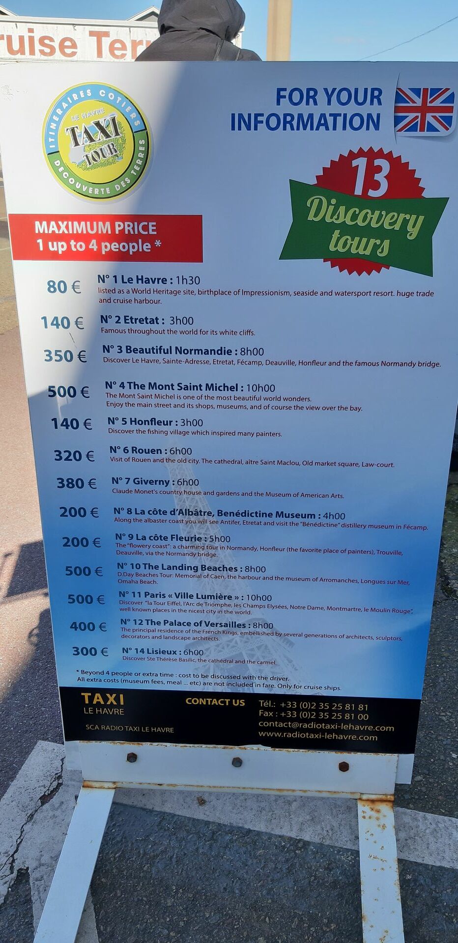Weiß jemand, wieviel ein Taxitransfer nach Honfleur ungefähr kostet? Es scheinen ja einige Taxen am Terminal bereitzustehen.