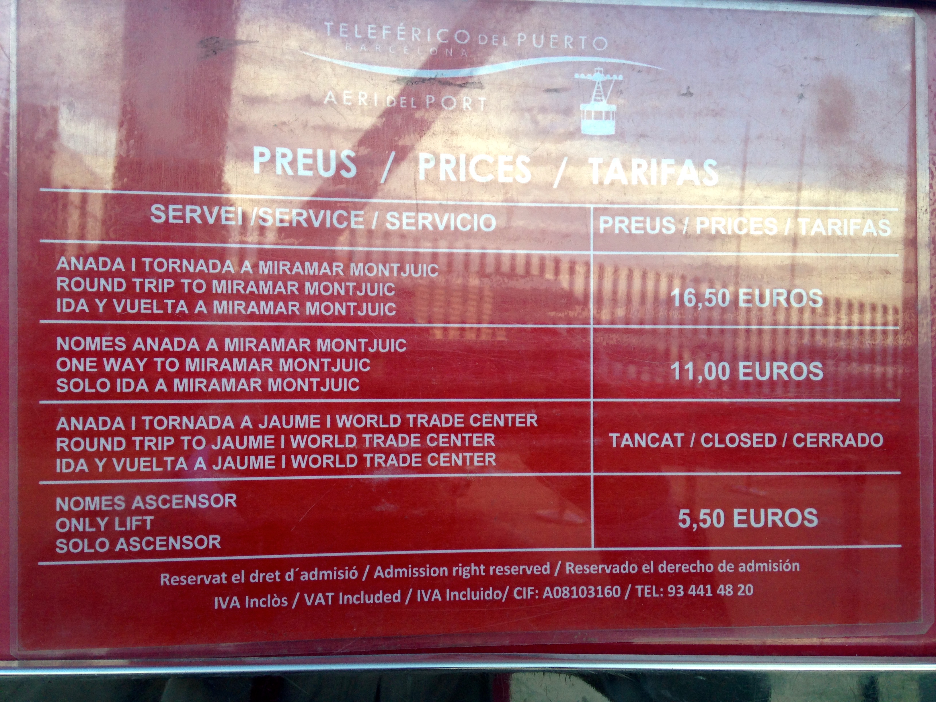 Für alle, die mal mit der Hafenseilbahn zum Mont Juic-Park fahren möchten, die Bahn fährt nicht direkt von der Station beim Busbahnhof (World Trade Center) - da wird an dem Turm gebaut.