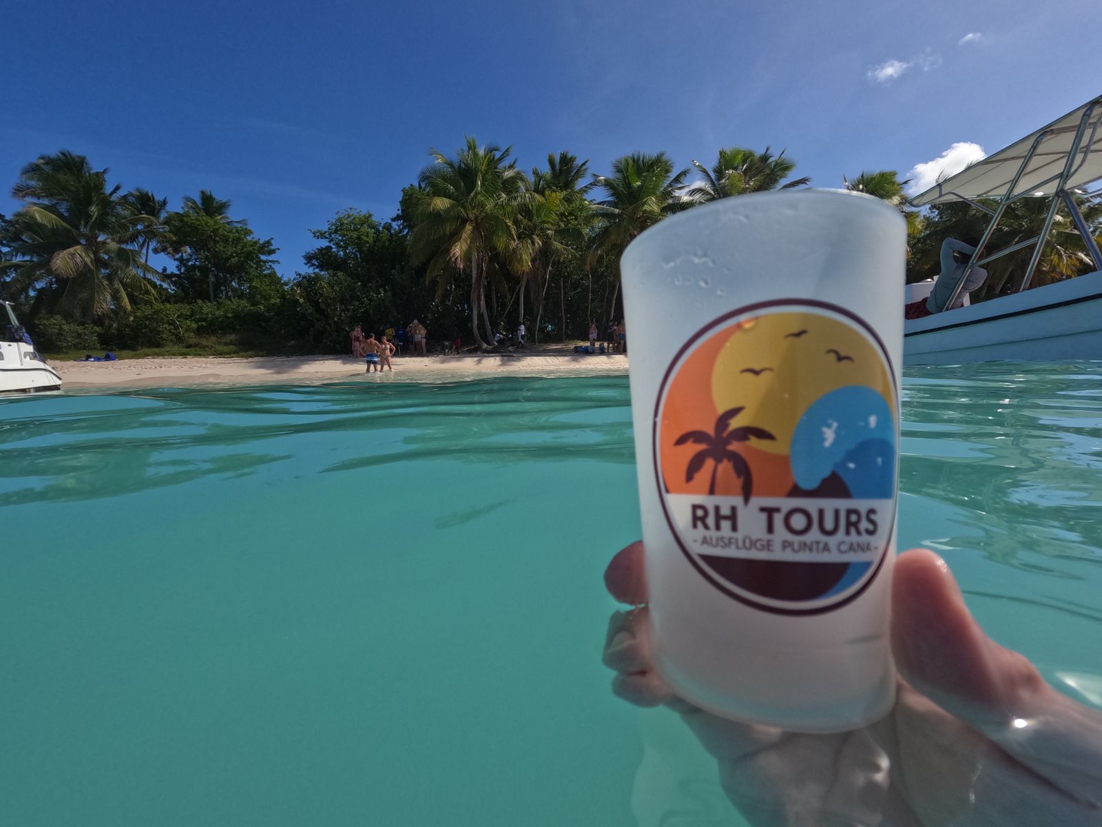 Mit acht Personen erreichten wir komfortabel nach circa 20 Minuten Bayahibe. Dort gesellten sich sechs Hotel-Touristen zu uns, die Gruppe war dann mit "nur" 14 Personen vollzählig. Hier in Bayahibe gab es den einzigen Kritikpunkt des Tages: wir wurden dort umringt von einer Vielzahl anderer Gruppen, Touristen und Verkäufern abgesetzt, ohne aber genau informiert zu werden, wie es weiter geht. Wir hatten aber die Tage zuvor schon die karibische Ruhe verinnerlicht und wenige Minuten später begrüßte uns schon Susi, unsere heutige Tour Begleitung. RH Tours wusste, das ich Geburtstag habe und so stimmte Susi direkt zu Beginn ein Ständchen an und versprach eine Überraschung am ersten Badestop. Es sollte nicht das letzte Lied zum Geburtstag bleiben.