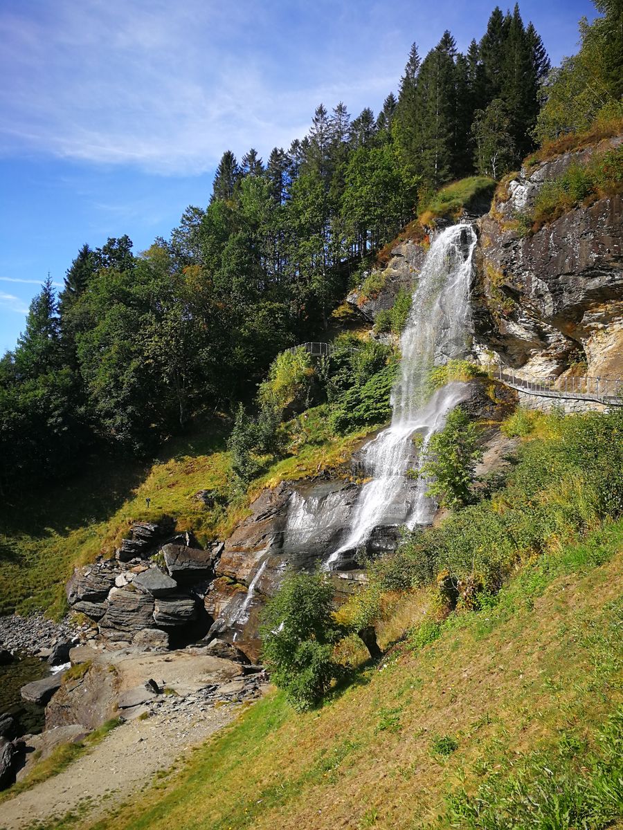 Wir sind heute mit dem öffentlichen Überlandbus zum Steindalsfossen gefahren. War total easy zu einem Preis von ca. 12 Euro pro Person. Die mar hat am Liegeplätze Bontelabo festgemacht und wir sind an der gleichnamigen Bushaltestelle gleich gegenüber des Liegeplatzes um 9:48 Uhr in den Bus Nr. 3 eingestiegen und später in der Station Handelshoyskolen im die Nr. 925 umgestiegen und waren nach einer Fahrt durch die wunderschöne Landschaft um 11:17 Uhr am Wasserfall. Um 13:02 Uhr haben wir die Rückfahrt angetreten und waren um 14:30 Uhr wieder am Ausgangspunkt zurück. Während unseres Aufenthaltes am Steindalsfossen waren wir bei tollem Wetter zeitweise alleine am Wasserfall. Zwischenzeitlich waren zwei AIDA Busse vor Ort, die jeweils für eine halbe Stunde für einen kurzen Fotostopp angehalten haben. Für uns war es ein sehr toller Tag und bei schönem Wetter würden wir es immer wieder so machen.