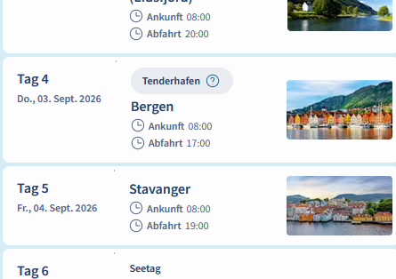 Im Zweifel steht der Liegeplatz noch nicht fest.. In der Anlauflistedes Hafens von Bergen konnte ich das Datum nicht auswählen...