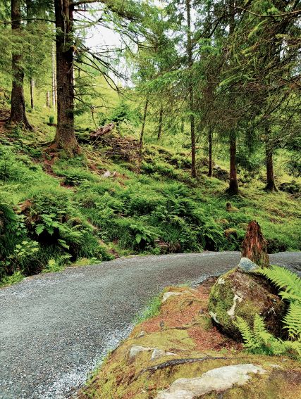 Als "langweilige Straße" empfand ich den herrlichen Wanderweg (übrigens nicht asphaltiert) durch den Wald so gar nicht. Im Gegenteil: Natur pur, unglaublich frische, klare Luft, Vogelgezwitscher, kleine Bäche oder kleine Wasserfälle (je nachdem, wieviel es geregnet hat) - Entspannung pur.