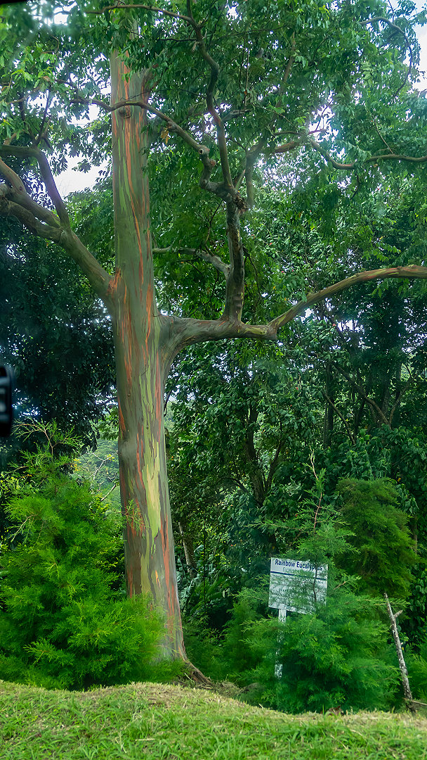 Auf dem Weg zu den Mona-Affen hielten wir noch vor dem Regenbogen-Baum, worüber ich mich sehr freute, und an einem Aussichtspunkt.
