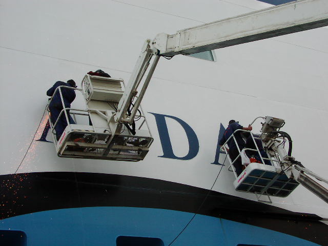 Das erste A vom alten AIDA Schriftzug, welches an diesem Tag abgeschweisst wurde, landete damals bei uns im TV Studiolager als Andenken. Was damit passiert ist, weiß ich leider nicht.
