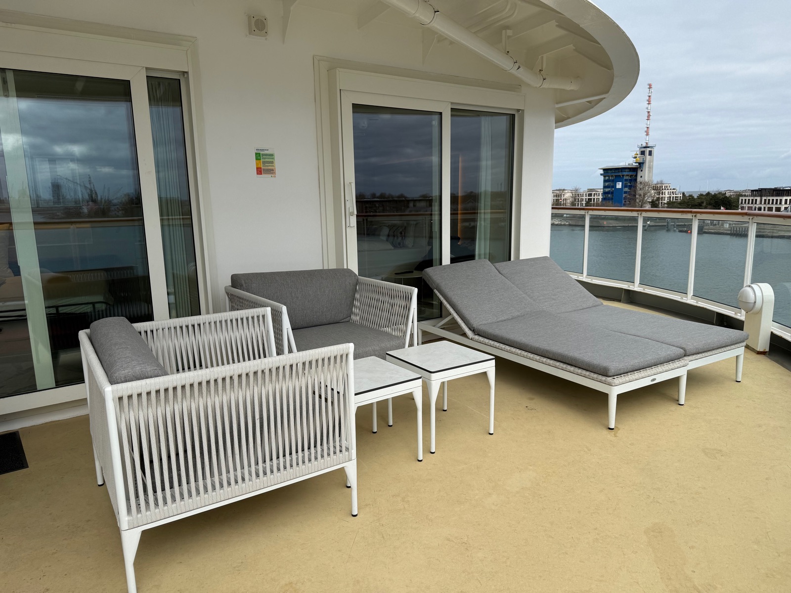 -> traumhaft großer Balkon (Abfahrten aus den Häfen sind ein Traum!)