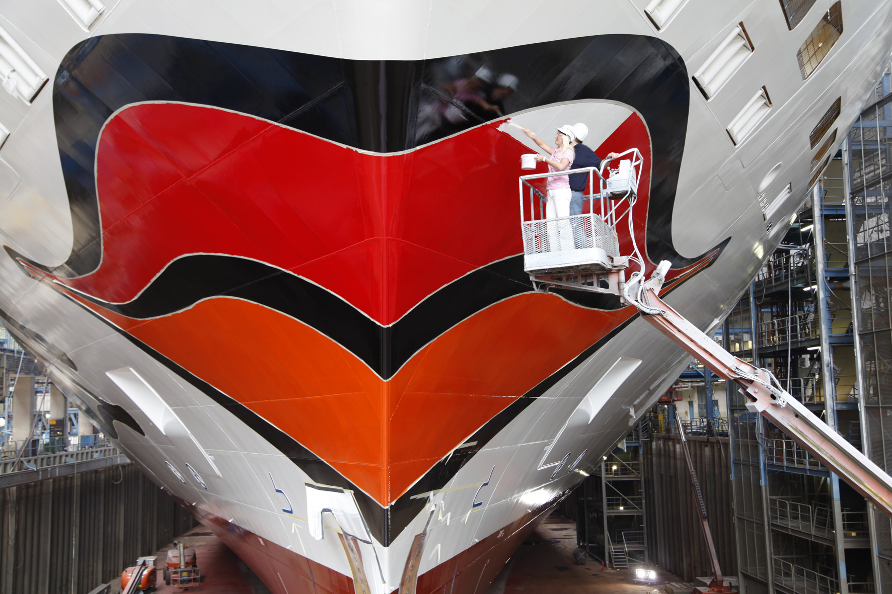 Der elfjährige Lukas Noruschat aus Castrop-Rauxel war besonders stolz darauf, dem neuesten AIDA Schiff seinen eigenen Farbtupfer geben zu können. Auch die 34-jährige Tanja Barkau aus Tecklenburg war es ein ganz besonderer Moment, den größten Kussmund der Weltmeere zu bemalen. Sie ist schon 10-mal mit AIDA verreist, eine Fahrt mit AIDAblu ist schon in Planung.