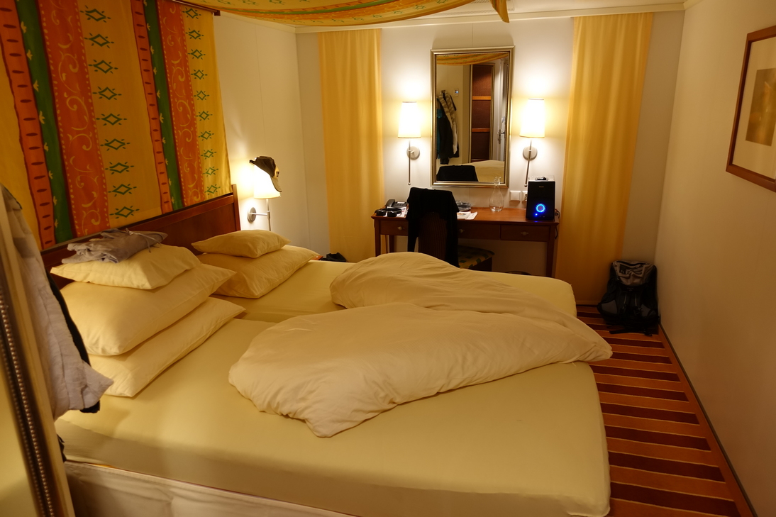 also, die Kabine auf der Aura ist Mittschiffs auf der Linken Seite ( Backbord) und ist schön ruhig gelegen.