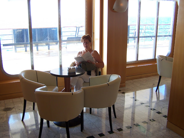 Die Liegen-, Hängematten- und Stuhlbesetzer gibt es auch auf diesem Schiff. Das Problem erledigt sich mit zunehmender Kälte am Nachmittag. Wir gehen mittags in die Sauna.