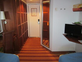 Die Kabine ist zentral gelegen, in der Nähe der Rezeption und der Fahrstühle. Ein Wasserspender befindet sich in unmittelbarer Nähe.