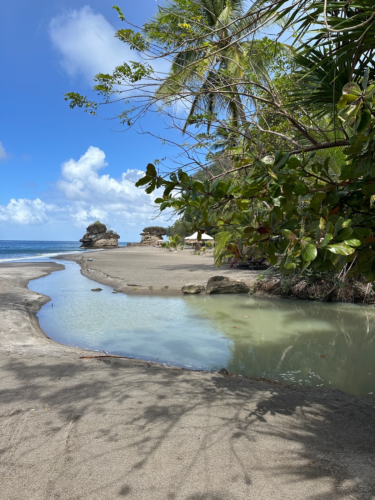 Bertahelene wir hatten ja die Westküstentour mit Willi. Bei der war ein Strandaufenthalt dabei. Ich meine ca.1,5 Stunden. Den Namen des Strandes weiß ich nicht mehr. Er war in Sichtweite der Pitons. Dort konnte man auch was essen.