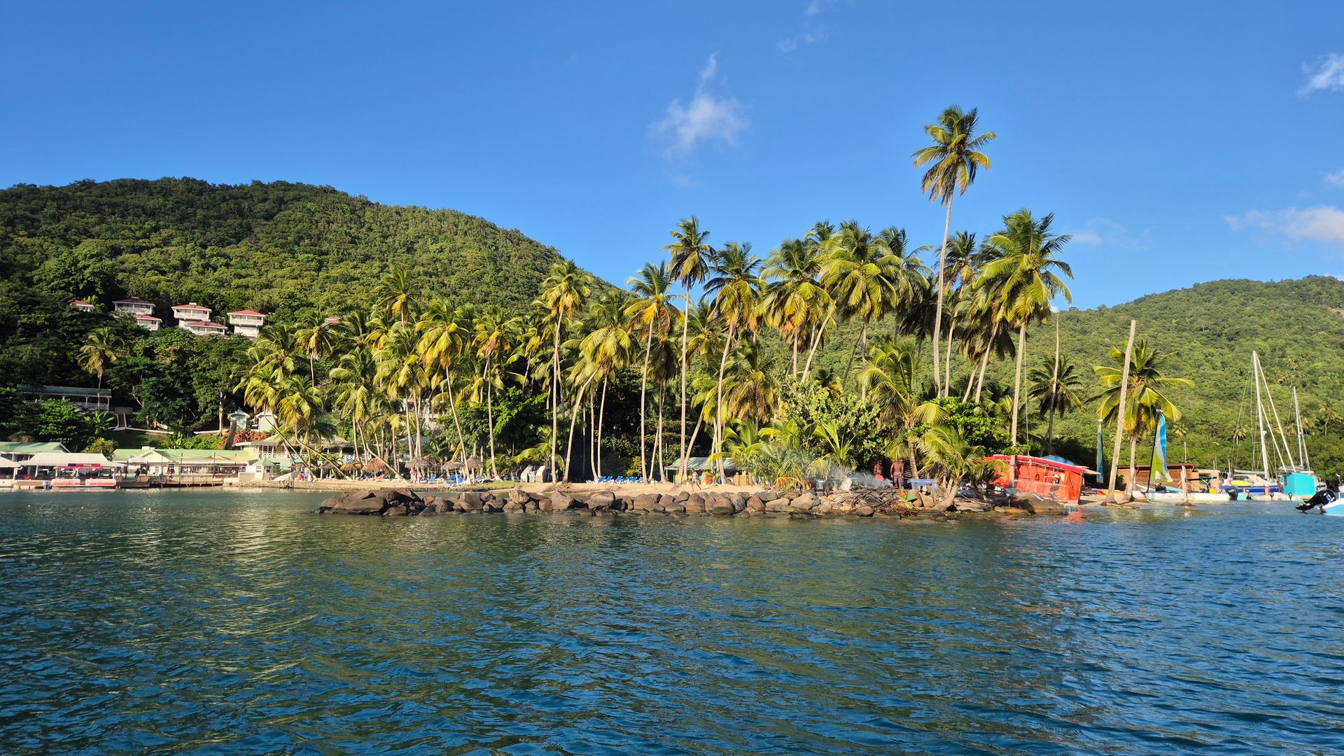 Die Fahrt führte uns danach zu einem Aussichtspunkt oberhalb der Marigot Bay, einer wunderschönen Bucht. Diese Aussicht sollte uns einen Vorgeschmack auf das geben, was uns noch im zweiten Teil der Tour auf See erwarten würde.