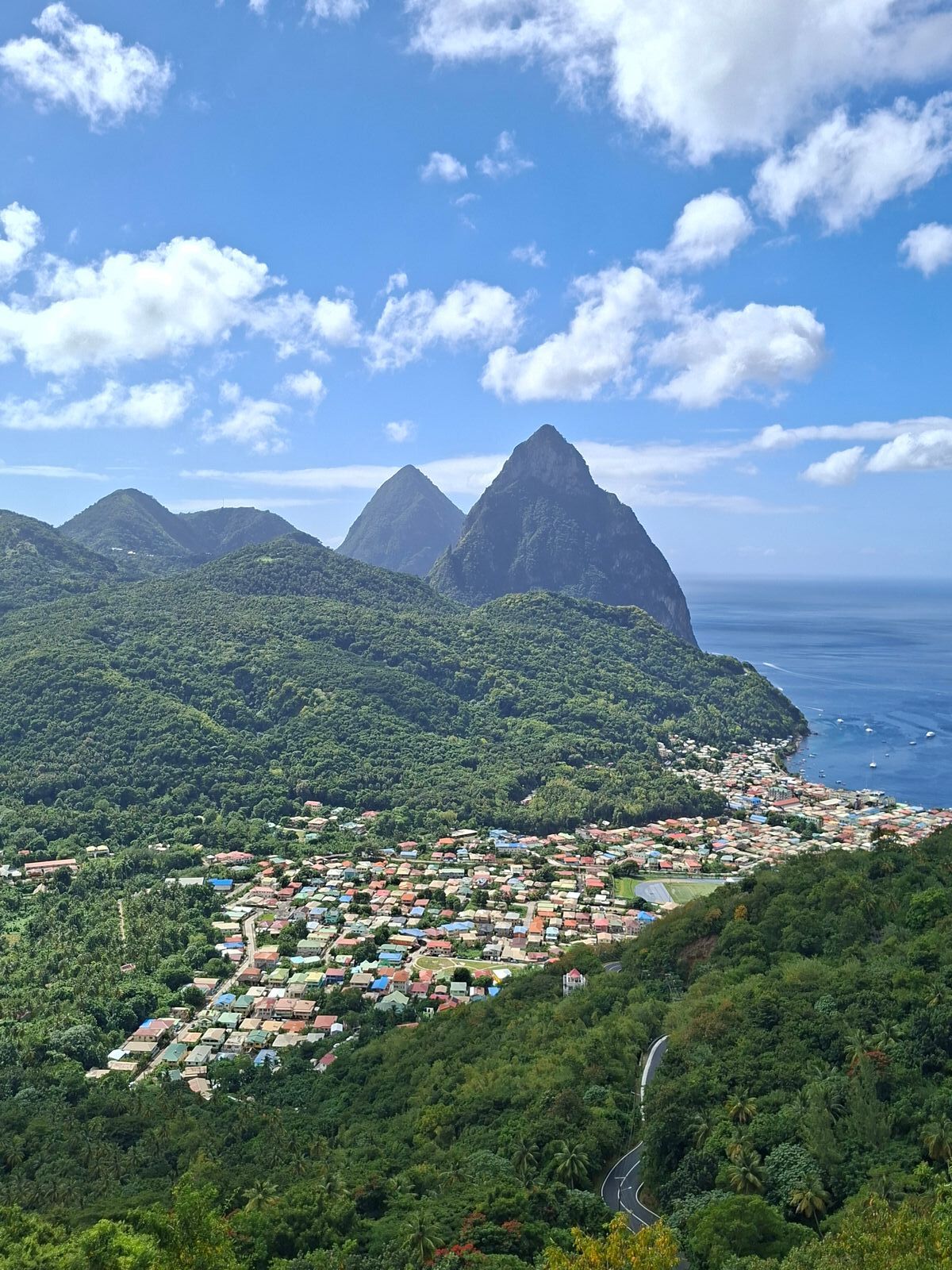 Letzter und beeindruckendster Halt war der Ausblick auf die Pitons, zwei Kegelvulkane, die es sogar auf die offizielle Flagge St. Lucias geschafft haben. Circa 15 Minuten hatten wir nicht nur die Möglichkeit, Bilder zu machen, sondern auch das ein oder andere Souvenir zu finden und/oder zu erwerben.