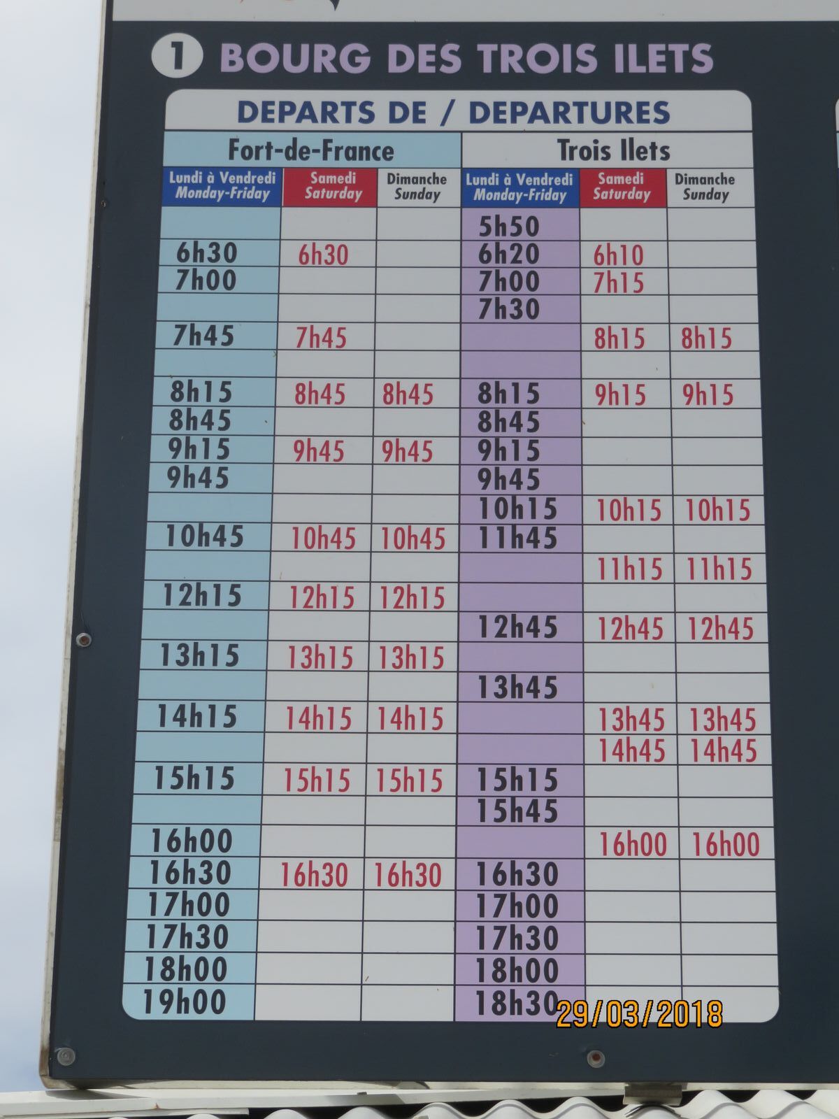 Wir sind im Januar mit der Fähre nach Pointe du Bout gefahren. Die wird von derselben Gesellschaft betrieben wie die nach Anse a l`Ane. Unsere Fahrten waren sehr pünktlich, die Zeit für die Überfahrt ist großzügig bemessen.
