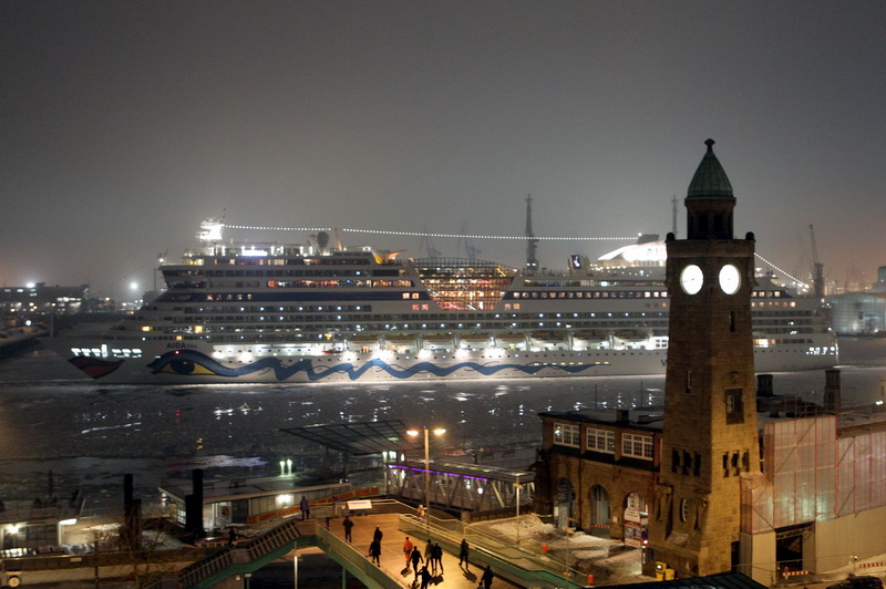 Das neueste Kreuzfahrtschiff der AIDA Flotte hat am 5. Februar die Hamburger Kreuzfahrtsaison 2010 eröffnet. Gegen 7:45 Uhr machte AIDAblu am Hamburg Cruise Center am Grasbrookkai fest.