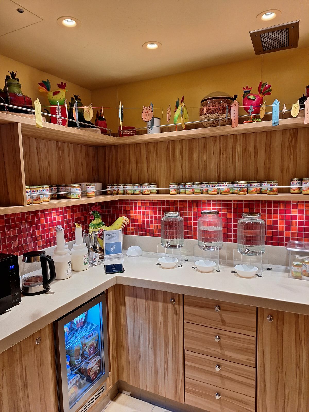 Nova Deck 16 ist das Fuego und dort gibt es einen Raum mit Babynahrung, Mikrowelle etc.