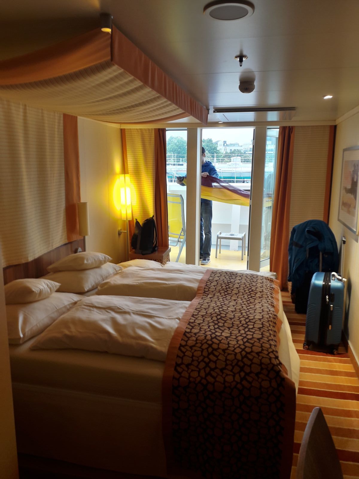 Die Kabine ist so wie alle anderen Balkonkabinen, der Balkon ist durch seine Tiefe doppelt so groß wie bei einer normalen Kabine, hat aber nicht nur Vorteile