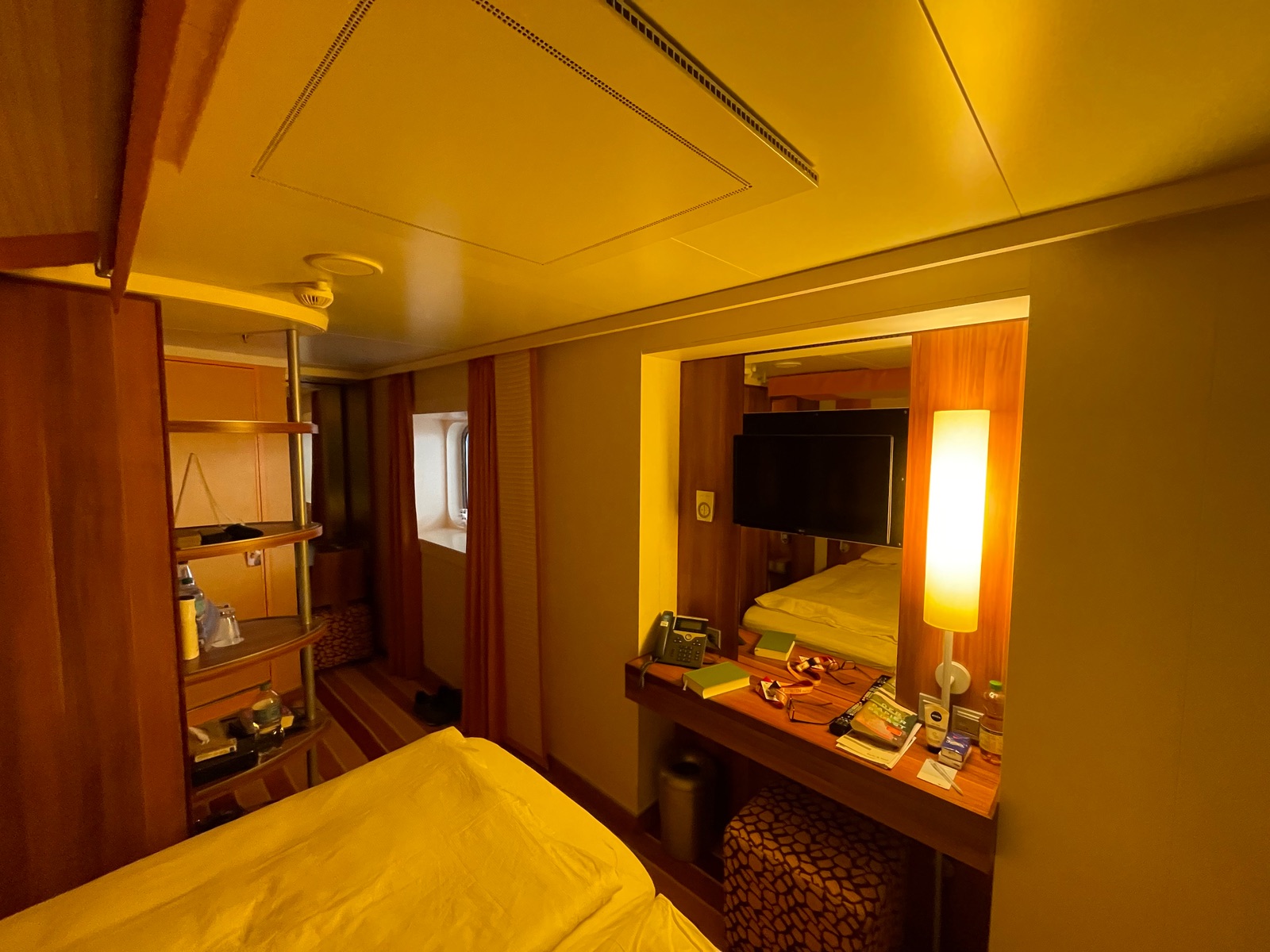 Nur den TV muß man halt etwas lauter stellen. Die Kabin liegt gut in der Nähe des hinteren Treppenhauses.