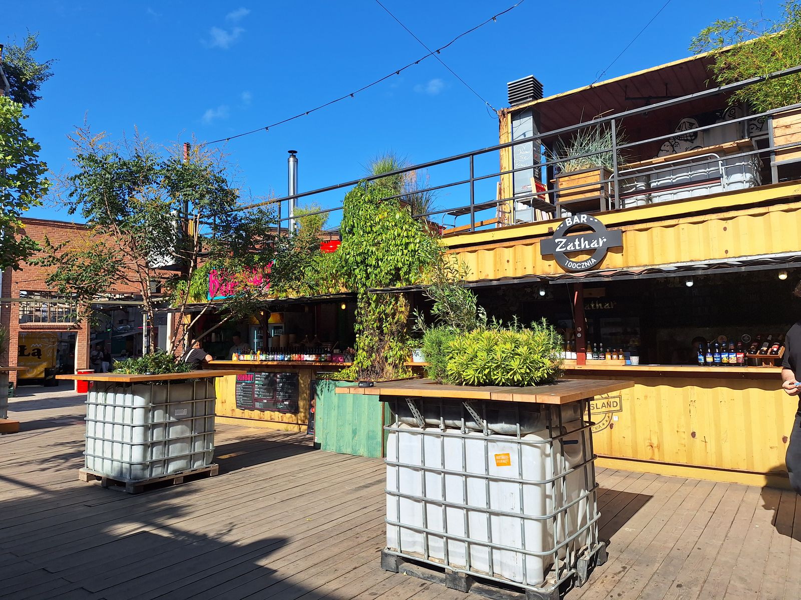 100cznia=Partymeile Container Hot Spot. In industriellem Ambiente u unmittelbarer Nachbarschaft zu Ladekränen u weiterhin bewirtschafteten Werftanlagen steppt tagtäglich der Bär. Tolle Location, Musik, Essen, Party und Kunst vereint. Zur Zeit sind dort 9 Container bewirtschaftet, es werden mehr!