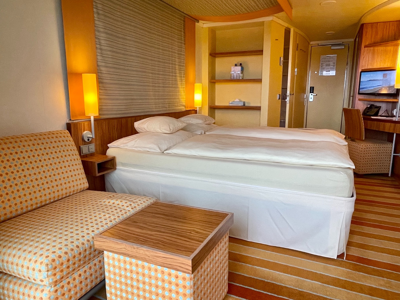 Sehr schöne und große Aussenkabine incl. Beistellsessel, welches als Bett umgelegt werden kann.