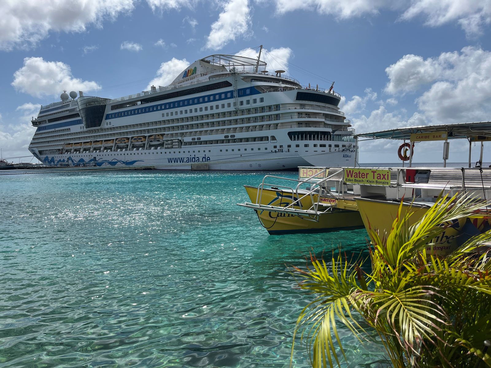 Nachdem uns AIDA unseren gebuchten Ausflug aus organisatorischen Gründen abgesagt hat, haben wir uns spontan entschlossen, zum Schnorcheln auf Klein Bonaire mit dem Wassertaxi zu fahren.