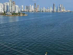 Man könnte mit Taxi zur Halbinsel Bocagrande, rund 30 min vom Terminal bei geringem Verkehr. Es sind schmale, tw. aber geschützte Strände mit Liegen, Sonnenschirmen usw., im Hintergrund Hochhäuser, also nicht unbedingt schön... ![]()