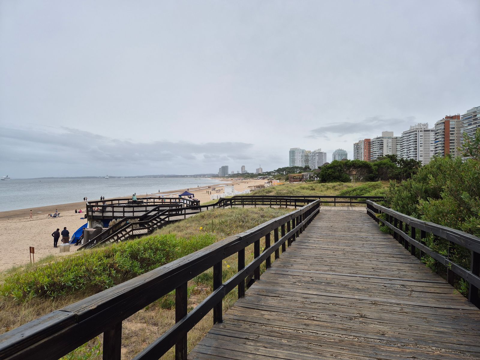 Direkt an der Tenderpier gibt es einige Fischer, Verkaufsstände. Hier kann man Seelöwen sehen, die auf Fischreste aus sind. Wir lieben Tiere und so haben wir hier doch schon recht lange Zeit verbracht und diese imposanten Tiere beobachtet. Irgendwann haben wir uns dann doch losgerissen und sich die einmal um die Halbinsel gelaufen. An der Pier werden Karten mit einem eingezeichneten Spaziergang vorbei an allen Sehenswürdigkeiten verteilt. Wer gut zu Fuß ist, kann alles erlaufen. Bei uns war es bewölkt und stürmisch. Auf der Altantik-Seite war es am Strand nicht schön. Nachdem wir im „Zentrum“ alles gesehen haben, sind wir den Strand auf der Seite des Rios de la Plata hoch und dort in ne Strandbar. Man sollte beachten, dass es der Nobelort von Südamerika ist. Insofern darf man auch Sylter Preise erwarten. 2 Eis 10 EUR, 2 Drinks ist der Bar 20 EUR. Trotz des widrigen Wetters haben wir einen schönen Tag verbracht. Wir sind insgesamt 15km gelaufen.