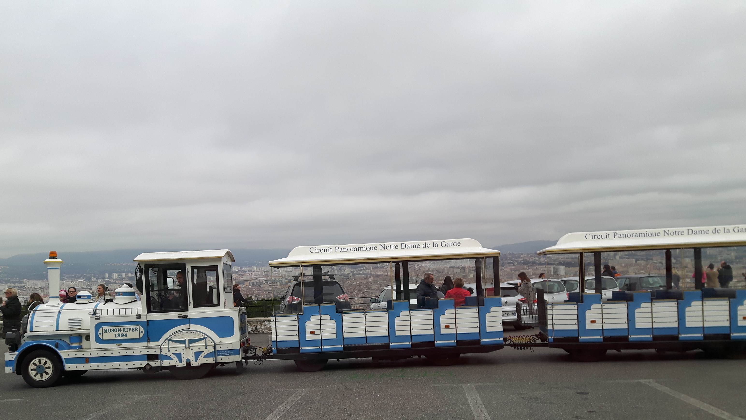 Von der Bushaltestelle in Marseille ist man relativ schnell am kleinen Hafen. Von dort fährt der Petite Train. Entweder durch die Stadt, oder zum Motre Dame. Der Fahrpreis beträgt 9€ pro Person. Der Train fährt aber nicht zwischen 12:20 und 13:40. Da ist Mittagspause.