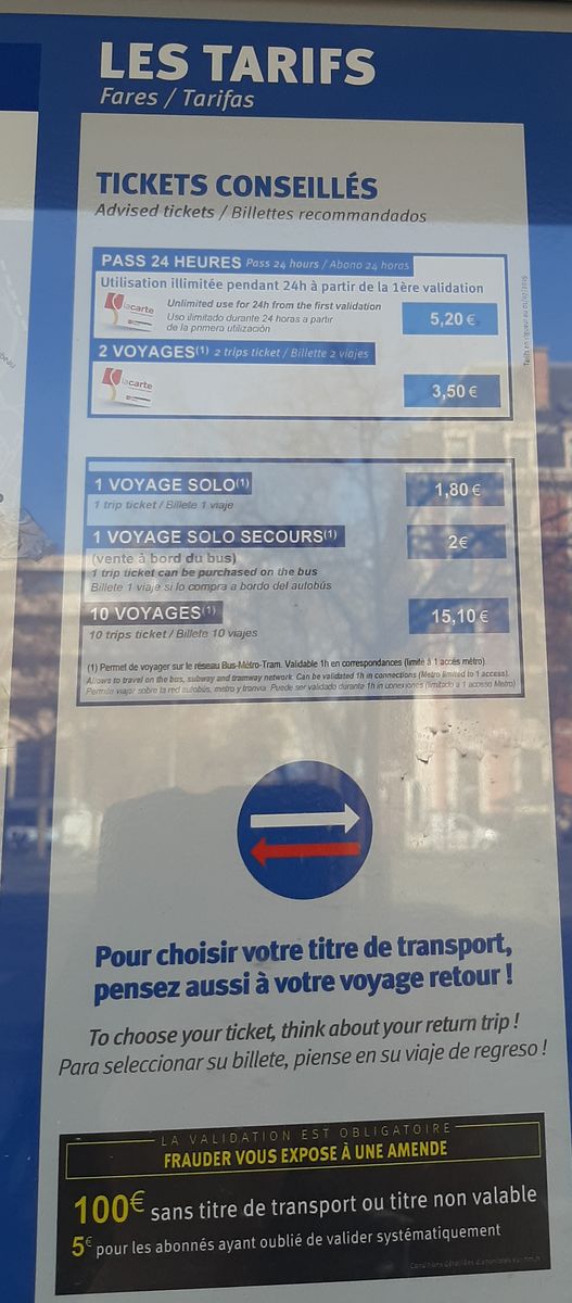 Wir sind dann noch ein kleines Stück weiter entlang der grünen Linie gegangen und kamen dann zur Haltestelle der Linie 35T. Dies ist eine Linie, die (ohne Zwischenhalte) zwischen Terminal Croisières und Juliette im 20-Minuten-Takt (mit kleiner Mittagspause / siehe Fahrplan) pendelt. Das Ticket (€ 2) konnte man in bar beim Fahrer (Kleingeld!) kaufen und im Bus entwerten. An der Haltestelle hing auch ein Plan, an welchen Tagen dieser Bus im März 2023 fährt. Wie es im restlichen Jahr aussieht, stand da leider nicht.