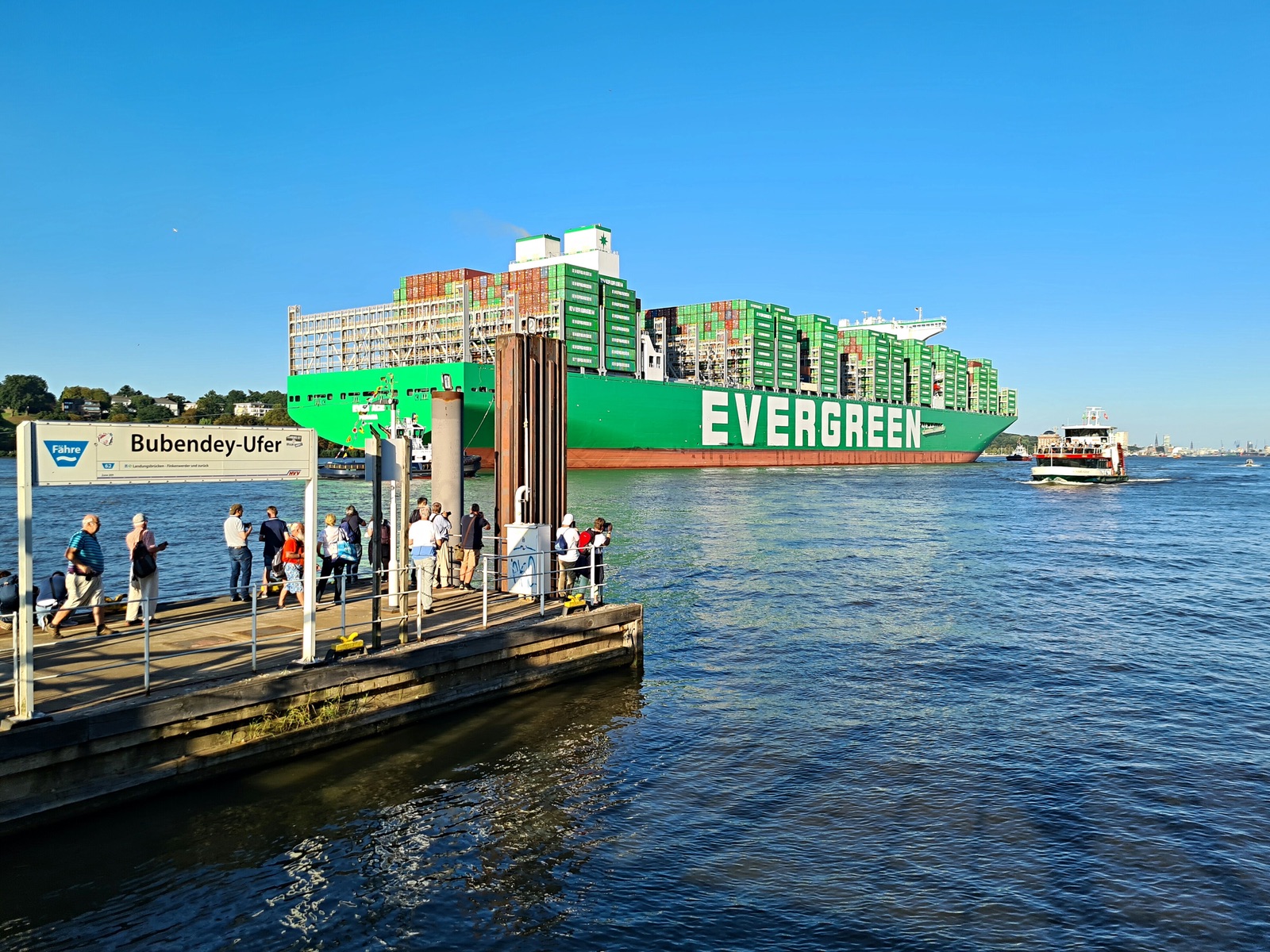 Das war die Ever Given. Die Schiffe sind gleich lang, aber die Ever Ace, die heute das erste mal nach Hamburg kam, ist 2,5 m breiter und zwar 61,5 m! Dagegen sind Kreuzfahrtschiffe, schmal.