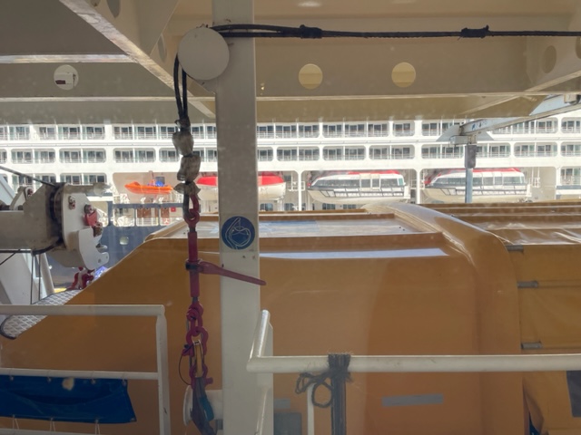 Die Kabine liegt absolut zentral, aber eigentlich sehr ruhig. Von den Schiffsgeräuschen bekommt man kaum was mit. Allerdings haben wir irgendwo her nachts manchmal leise Unterhaltungen gehört. Und die waren nicht deutsch und stammten wohl von der Crew. War aber nicht störend. Die Sicht war trotz Rettungsboot auch super.