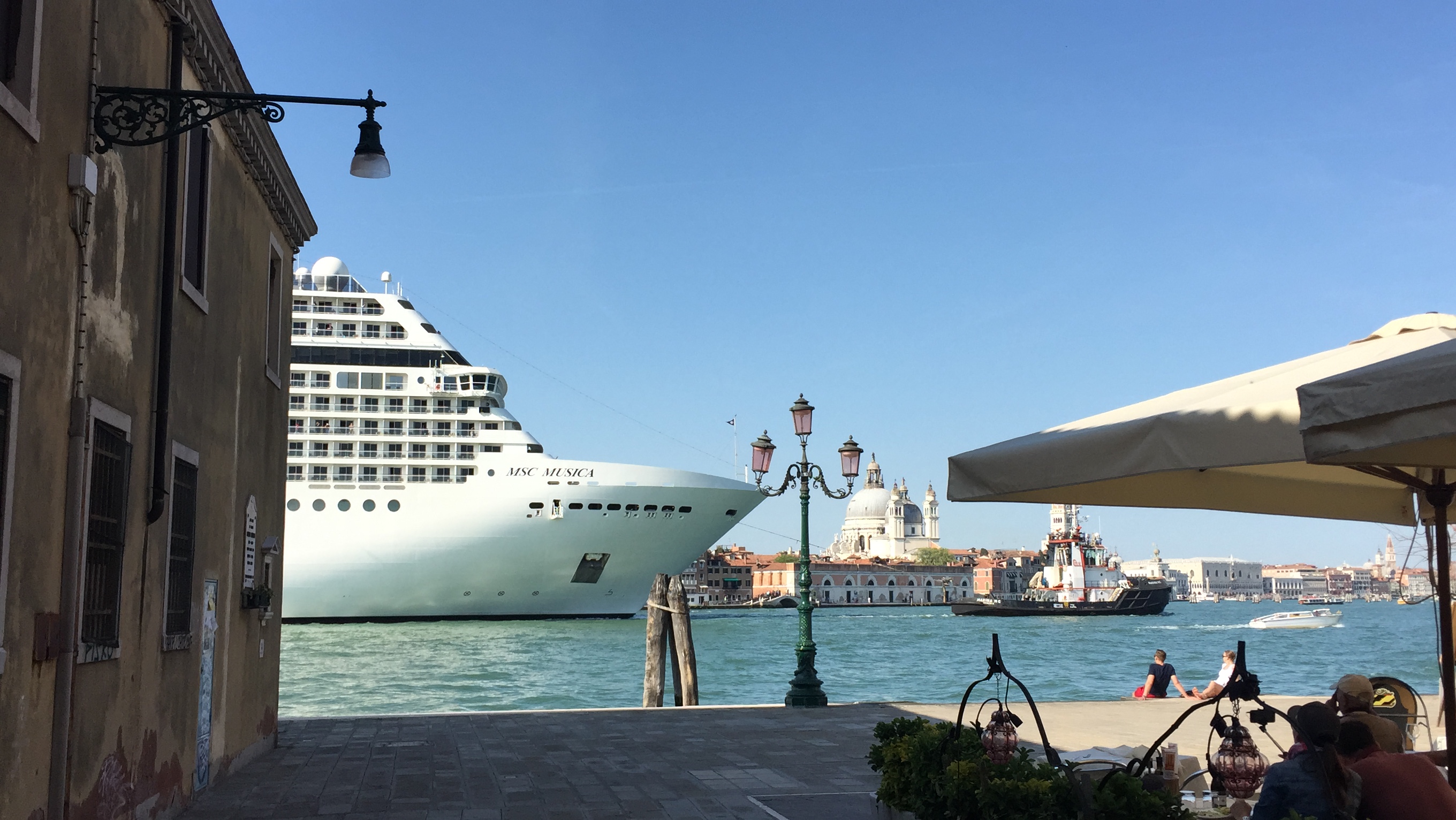 Nach dem Auschecken wurden wir gleich von einem privaten Taxifahrer angesprochen. Da wir uns aber am Vortag bei den offiziellen Taxis erkundigt hatten und eine Telefonnummer (finde ich leider nicht mehr, kann man sich aber bei den Taxifahrern im Hafen am Vortag geben lassen) hatten, wussten wir, dass ein Taxi bei Anruf schnell da ist oder sogar weiter hinten am Taxistand im Hafen steht. Der Festpreis zum Marco Polo Flughafen beträgt € 45. Als der Fahrer sah, dass ich mein Handy zückte war er auf einmal auch bereit uns für den gleichen Preis zu fahren. Also, nicht veräppeln lassen.Alternativ kann man Samstag zwischen 8:00 und 8:30 oder am frühen Mittag, genaue Zeit weiß ich nicht mehr, vom Schiff. Also Samstag Sightseeing, abends noch duschen und essen auf dem Schiff und dann Auschecken ist nicht. Braucht man ja auch nicht ...