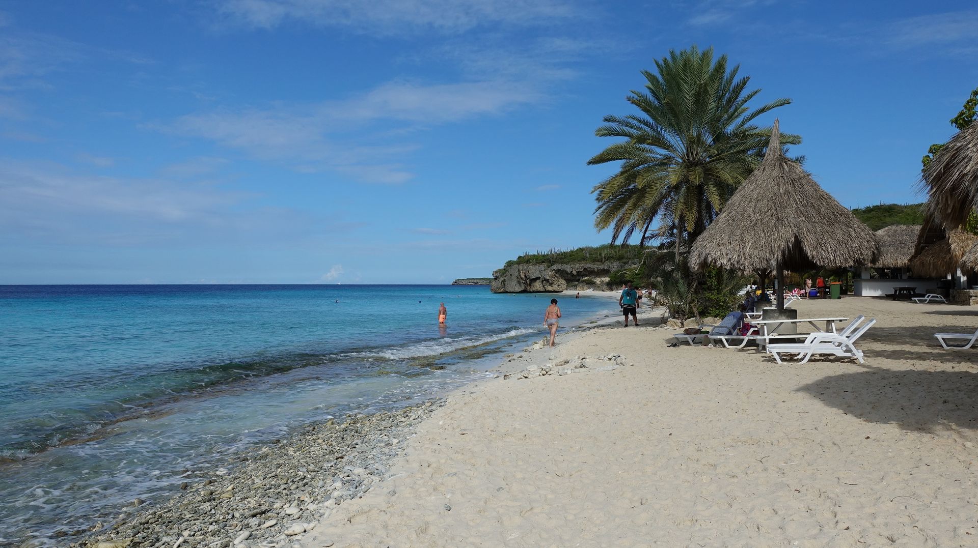 Wir sind nach einer Pause und Strandaufenthalt am Playa Santa Cruz dann wieder zurück und zum Strand Cas Abao gefahren, der 7 U$ Eintritt pro Auto kostet. Dort war natürlich viel mehr los - u.a. mehrere AIDA Ausflugsbusse und auch sonst das halbe Schiff. Es gibt Infrastruktur, Essen/Drinks und WC/Duschen. Als Erstbesucher von Curacao würde ich aber eher zum Kokomo Beach Club fahren.
