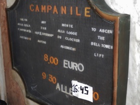 Gewusst habe ich es nicht, habe aber gerade mal im Internet nachgeschaut. Der Campanile öffnet täglich um 09:45 Uhr und schließt um 19:00 Uhr.
