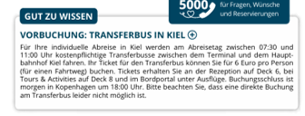 Chaosbiene Bei mir war es bisher so dass ein Shuttle auch immer noch an Bord gebucht werden kann. Also vorab dann gar nicht buchen wenn du es in Kiel nicht benötigst