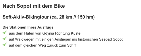 Ich habe mich jetzt für Bike und einen extra Danzig-Ausflug entschieden.