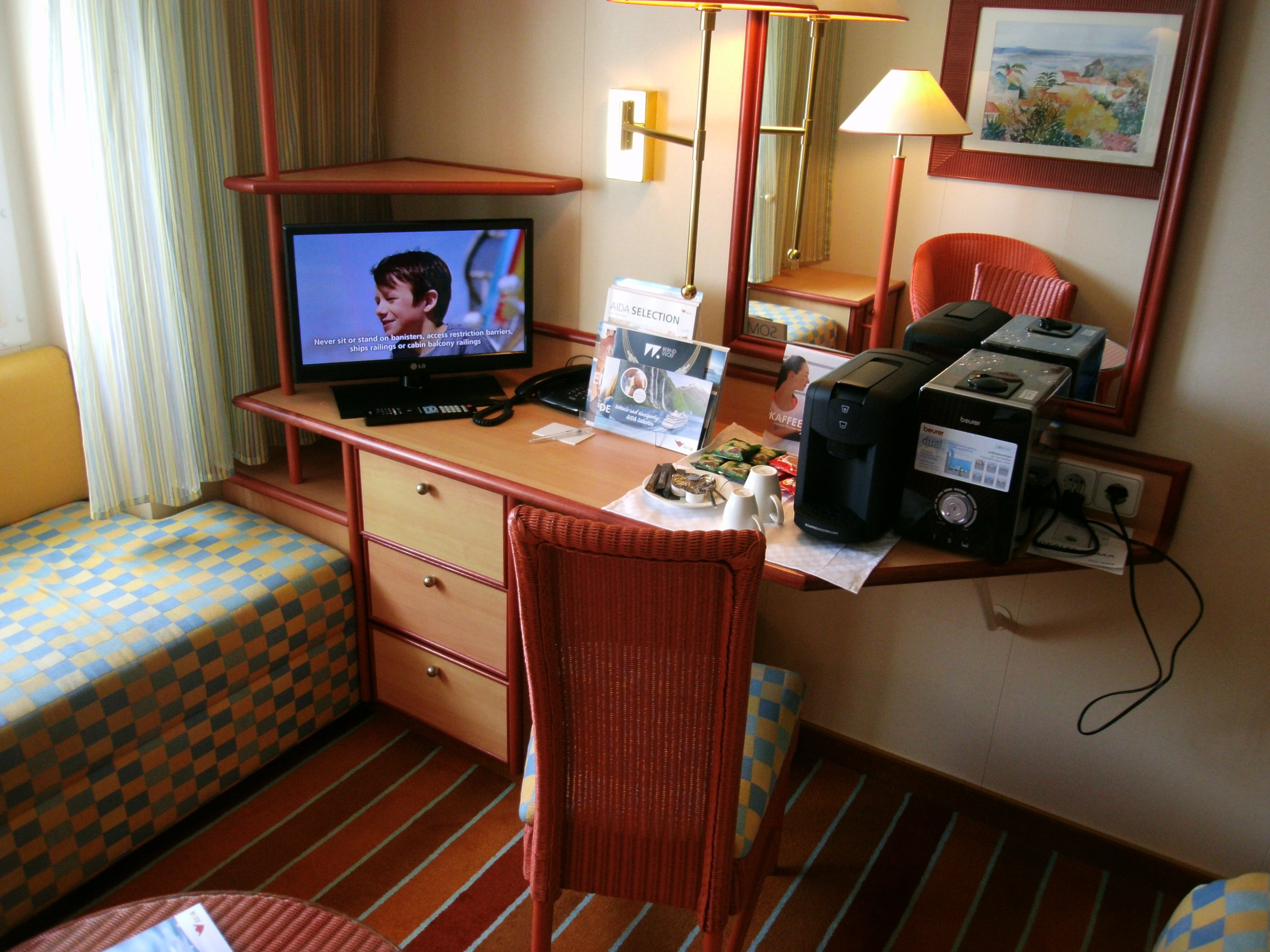 Man hört aber die Maschinen, besonders das Seitenstrahlruder (?) bei Manövern. Für Langschläfer ist diese Kabine nichts.