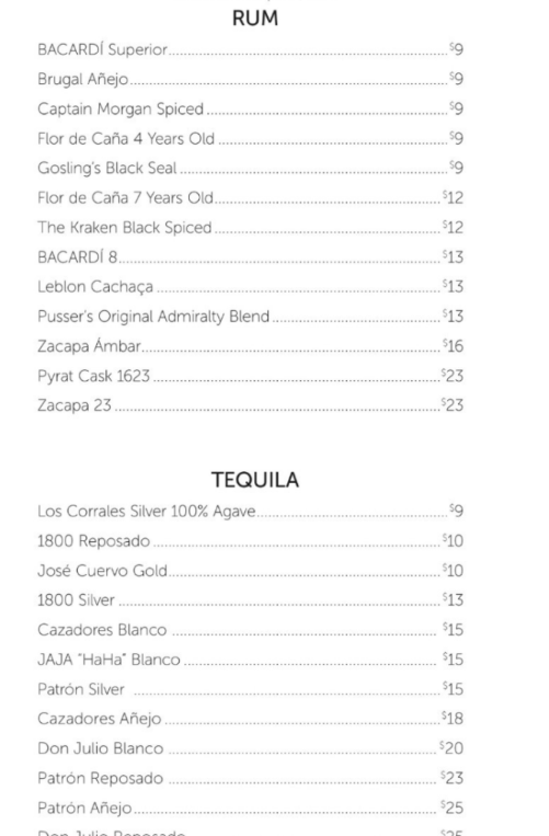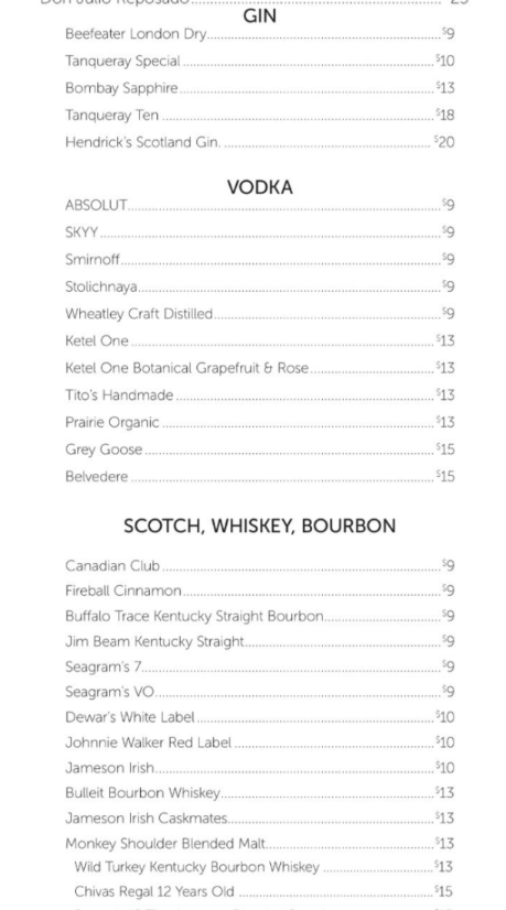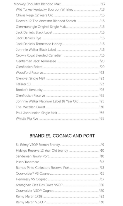 Wir hatten alles, was bis 15 $ auf der Karte stand, inklusive. Das ist eine riesige Auswahl an Bieren, Weinen, Spirits, Cocktails usw. Allerdings kein Wasser in Flaschen.