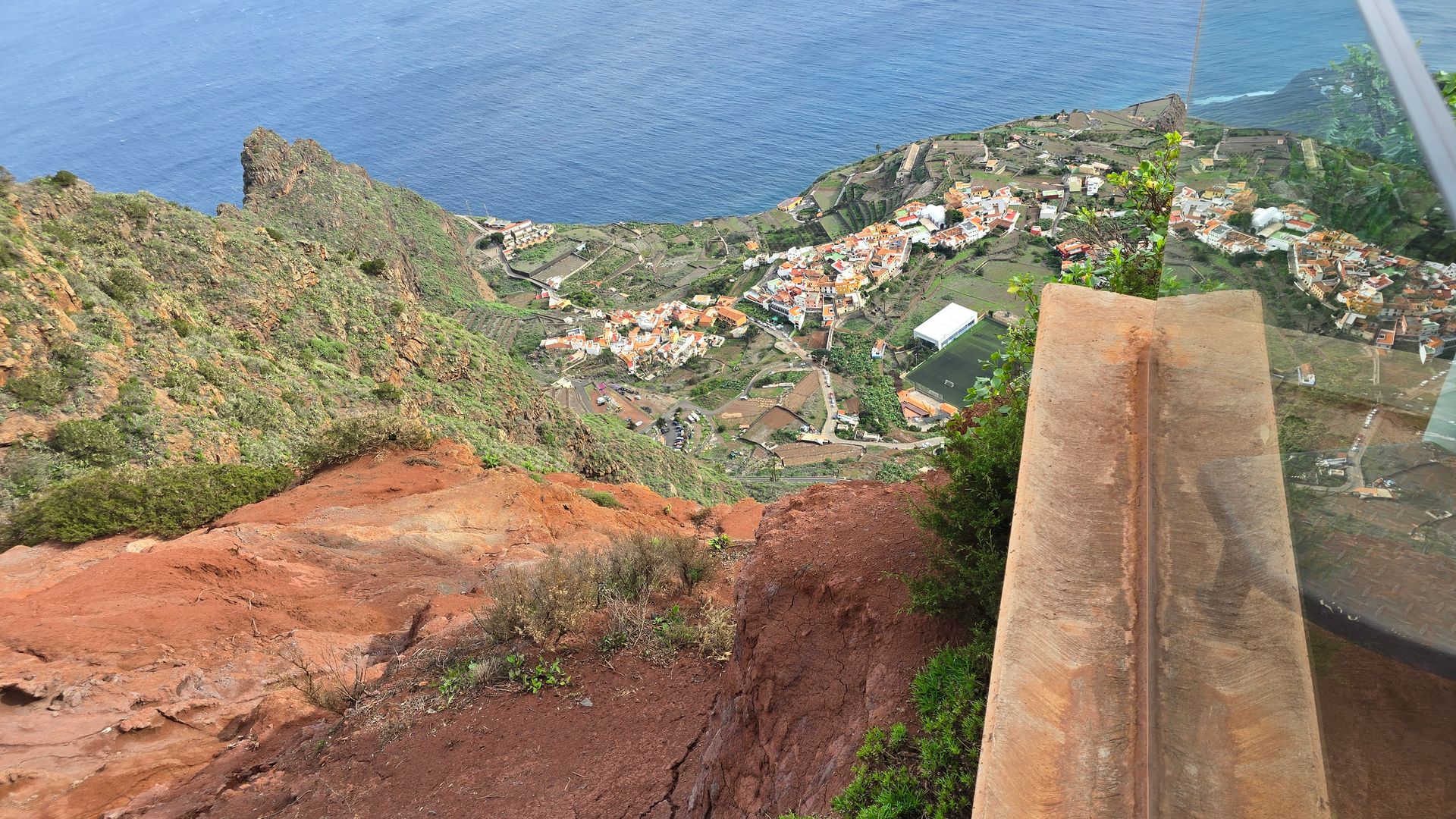 Die Wand unter dem Skywalk snd wir vom 400 m tiefer liegenden Agulo nach oben gewandert, zu einer Zeit, als es den Skywalk noch nicht gab. War noch Natur pur