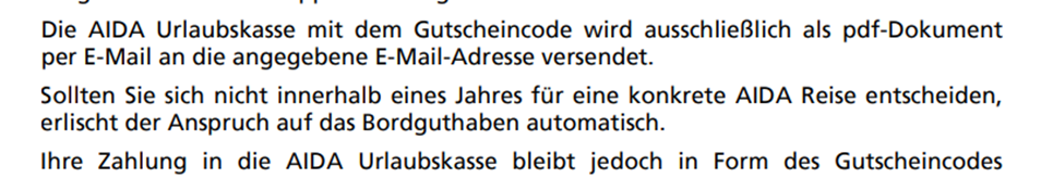 Ich denke Manche möchten dann das Bordguthaben von der Urlaubskasse und das von an Bord gebuchten Reisen mitnehmen, aber geht das überhaupt? Schließt dass eine das Andere nicht aus?