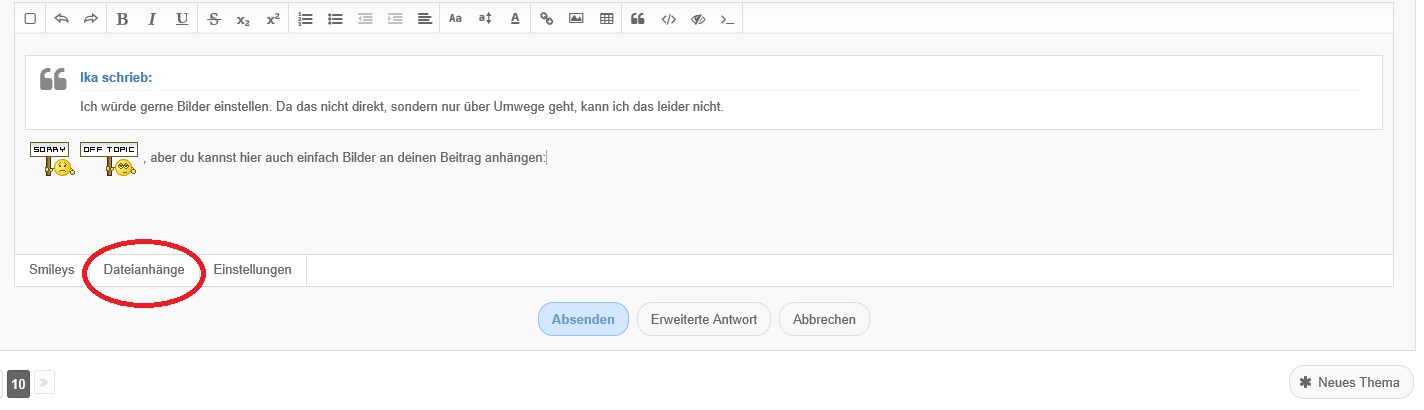 , aber du kannst hier auch einfach Bilder an deinen Beitrag anhängen: