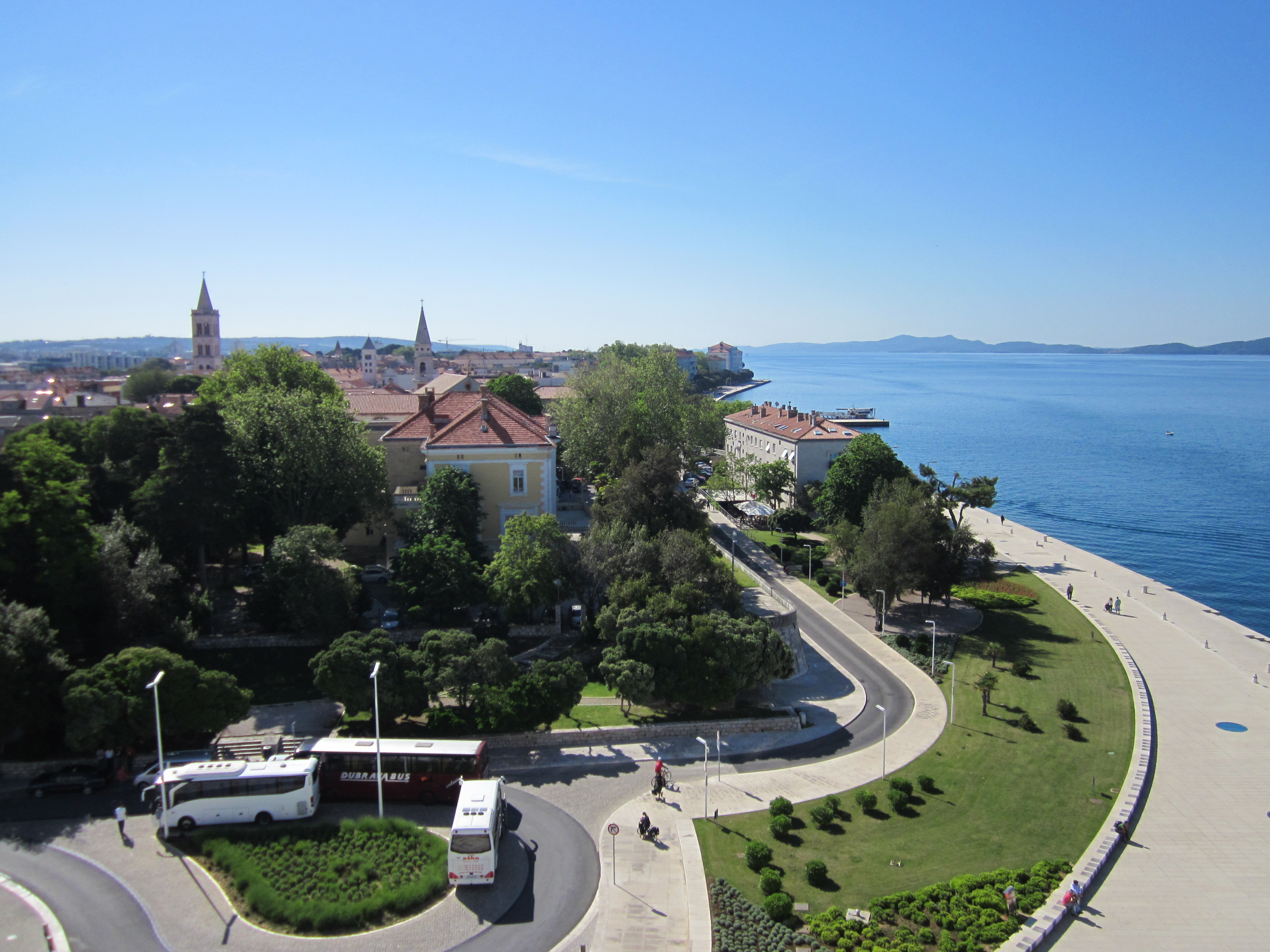 In meinem Beitrag Nr. 270 habe ich Fotos eingestellt, auf denen die Meeresorgel hinter dem "Gruß an die Sonne" (rechts in der Bildmitte bei der Personengruppe) zu sehen ist. Vielleicht könnt Ihr so die Entfernung zur Stadt einschätzen (wenige hundert Meter).