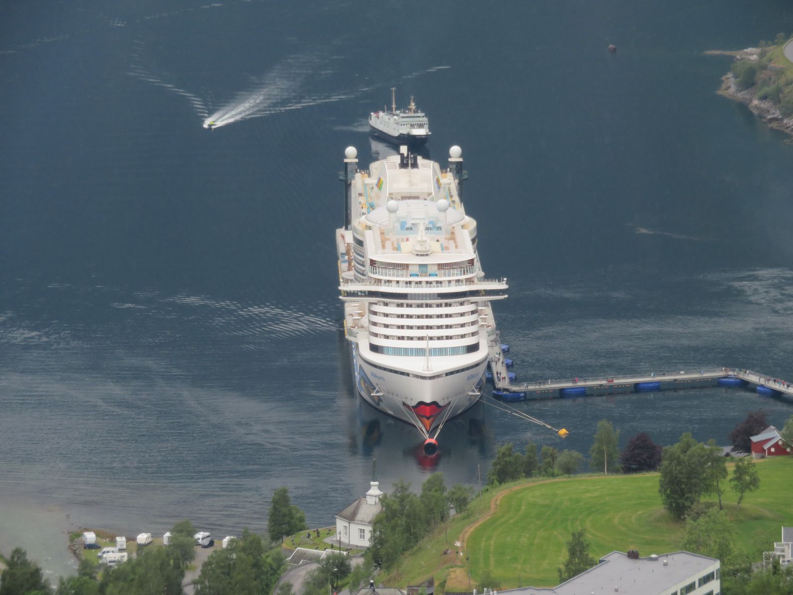Zuerst ging es zum Flydalsjuvet mit 15 Minuten Aufenthalt. Hier hatten wir einen wunderbaren Ausblick auf Geiranger und den Fjord.
