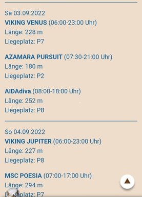 Da kann ich ja am 23.7 zuschauen wie die Diva ausläuft oder am 3.8 nach der Reise der Mar nochmal zum Abschied winken