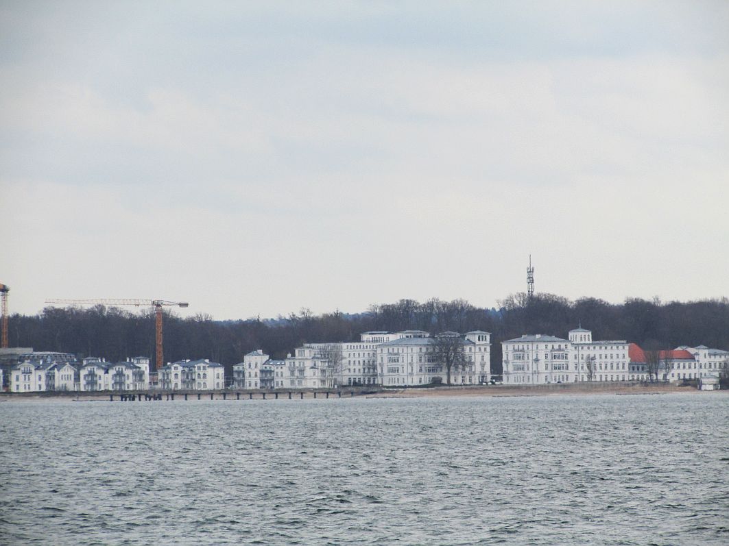 Blick vom Strand unterhalb der "Wilhelmshöhe" in Richtung Warnemünde - am Horizont "Neptun" und "A Ja Resort"