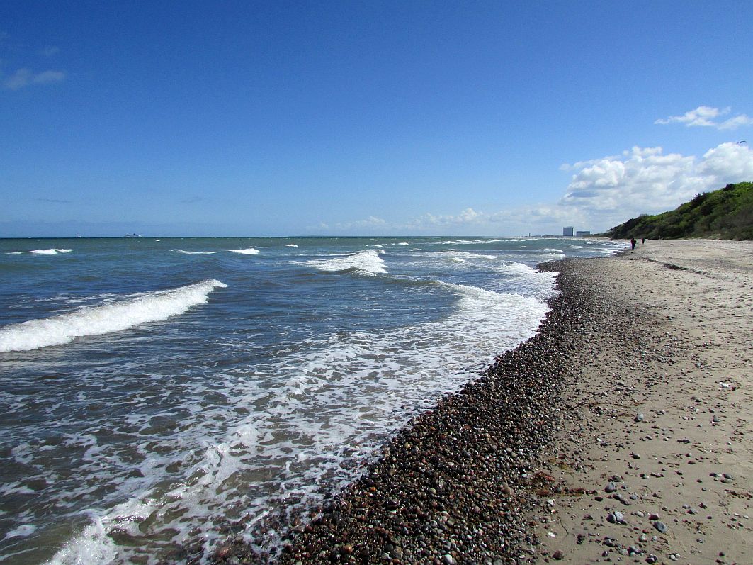 Je weiter man sich von Warnemünde entfernt, umso mehr Steinfelder und auch größere Steine findet man am Strand - für alle Fans von "Hühnergüttern" ein wahres Paradies.