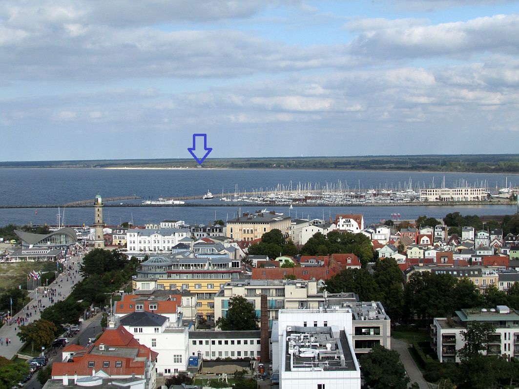 Warnemünde vom Pier 7 bis Wilhelmshöhe sag ich mal etwas über ne Stunde...