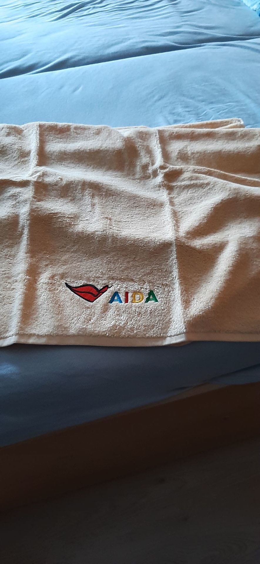 Haben heute die blauen kleinen Rucksäcke und den Pin (25 Jahre AIDA) bekommen, sind (noch) ROT .